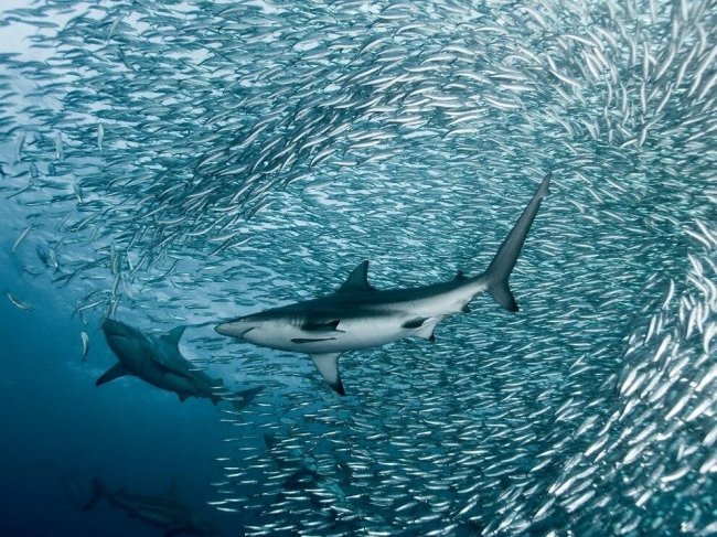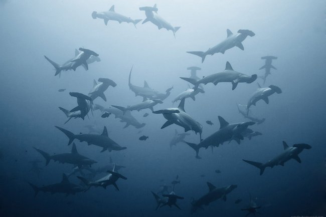 Короткохвостые серые акулы. Быстрые и активные акулы встречаются в одиночку, парами или слабо организованными группами, включающими до сотни особей: